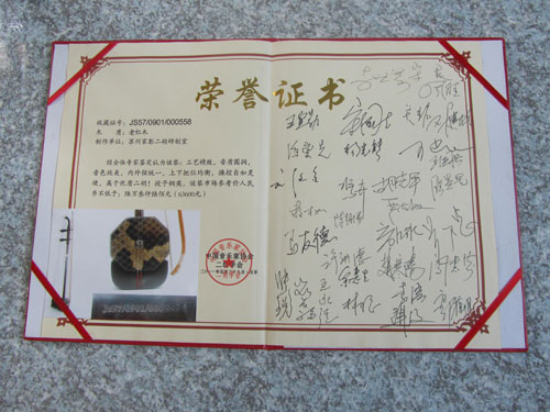 二胡制作大師丁家彭先生1949年出生樂器世家,17歲隨其祖父學琴藝,并深得精髓,其聰穎好學,悉心鉆研與 探求二胡制作,博得同行的欽佩贊許,更得了許多知名演奏家的稱贊,充分認識到二胡制作每個環節,都對二胡制作都有影響力,因此對二胡的選材,選料,蟒皮都十分嚴格,二胡整體穩定性良好,環境干擾影響極小。